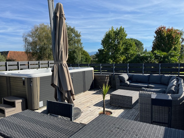 Pour parfaire ce bien exceptionnel, un espace extérieur à l’étage réservé au bien être, à la détente et quiétude face à la chaîne des Pyrénées, à l’abri des regards : sauna, jacuzzi assortis d’un coin « canapés »,